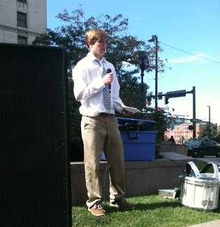 Lake Catholic student Connor Robinson speaks at the rally.